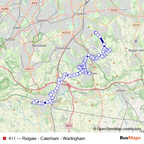 Click here to view the nearest 411 - Reigate - Caterham - Warlingham bus stop.
