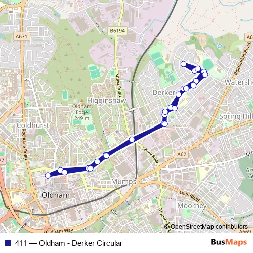 Click here to view the nearest 411 - Oldham - Derker Circular bus stop.