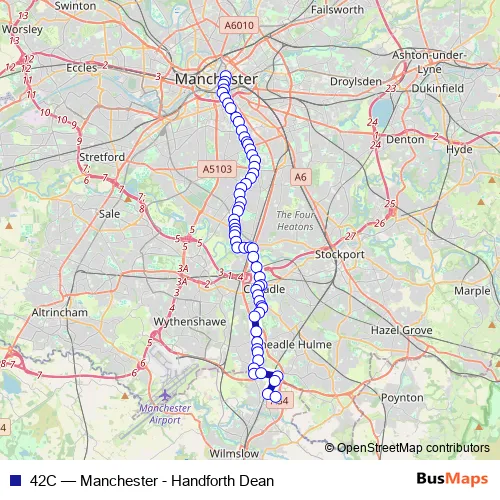 Click here to view the nearest 42C - Manchester - Handforth Dean bus stop.