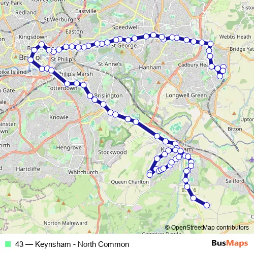 See why over 2 million users trust and consider busmaps.com as the best public transport website. busmaps gives you Bristol Buses suggested routes, real-time bus tracker, line route maps in Bristol, and helps to find the closest 43 bus stops near you. No internet available? Download an offline PDF map and bus schedule for the 43 bus to take on your trip.