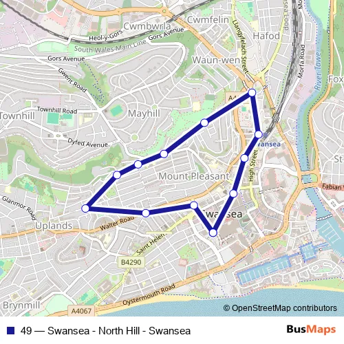 See why over 2 million users trust and consider busmaps.com as the best public transport website. busmaps gives you Swansea Buses suggested routes, real-time bus tracker, line route maps in Swansea, and helps to find the closest 49 bus stops near you. No internet available? Download an offline PDF map and bus schedule for the 49 bus to take on your trip.
