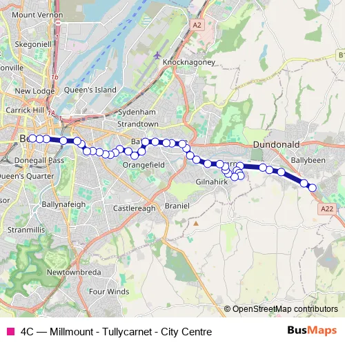 Click here to view the nearest 4C - Millmount - Tullycarnet - City Centre bus stop.