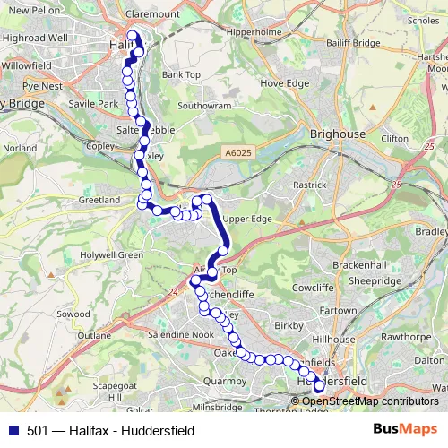 Click here to view the nearest 501 - Halifax - Huddersfield bus stop.
