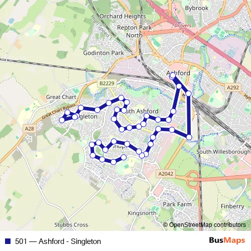 Click here to view the nearest 501 - Ashford - Singleton bus stop.