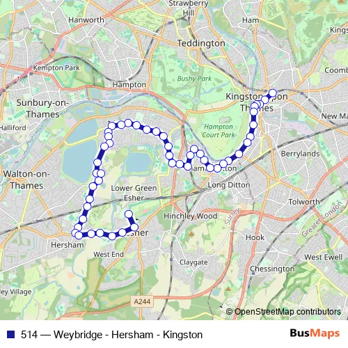 Click here to view the nearest 514 - Weybridge - Hersham - Kingston bus stop.