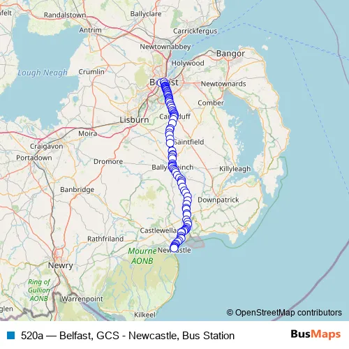 Bus 520a - Belfast, GCS - Newcastle, Bus Station in Belfast: Stops & Timetable
