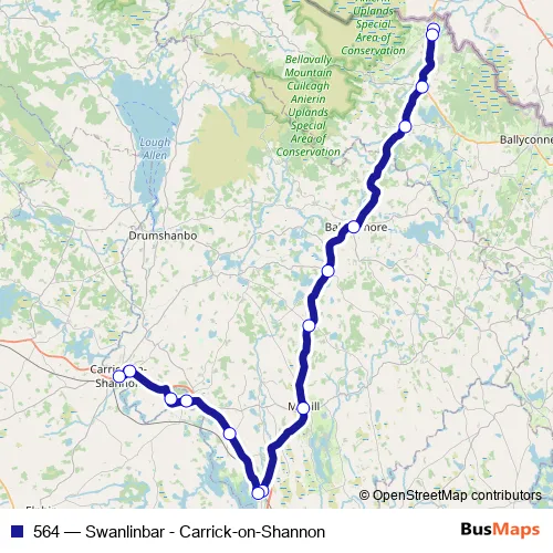 Enniskillen Road - Main Street - Bawn Road - Ballinamore Road - Main Street - Hyde Street - Station Road - Harbour Road - Carrick-on-Shannon Bypass Road