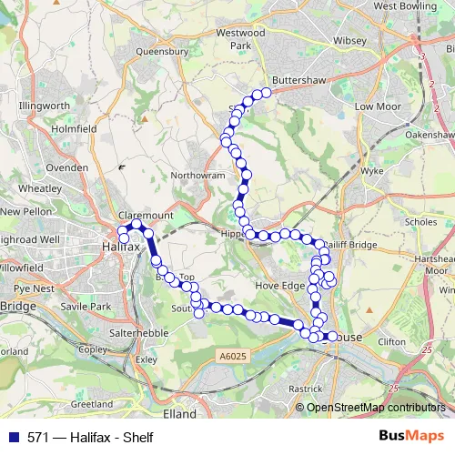Click here to view the nearest 571 - Halifax - Shelf bus stop.
