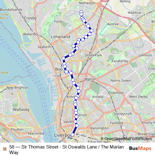 58 (Sir Thomas Street - St Oswalds Lane / The Marian Way) Bus in Liverpool