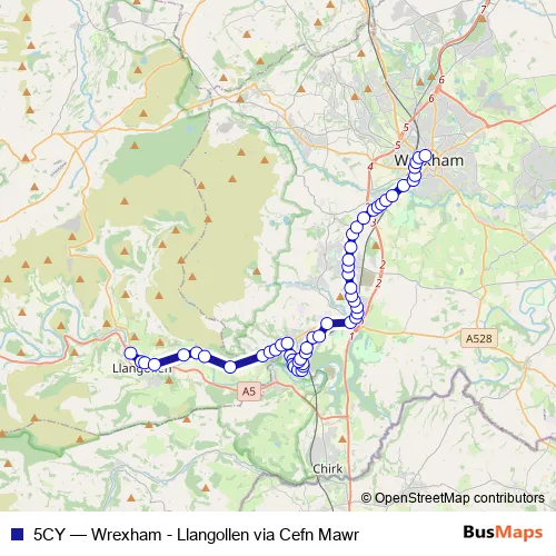 See why over 2 million users trust and consider busmaps.com as the best public transport website. busmaps gives you Wrexham Buses suggested routes, real-time bus tracker, line route maps in Wrexham, and helps to find the closest 5CY bus stops near you. No internet available? Download an offline PDF map and bus schedule for the 5CY bus to take on your trip.