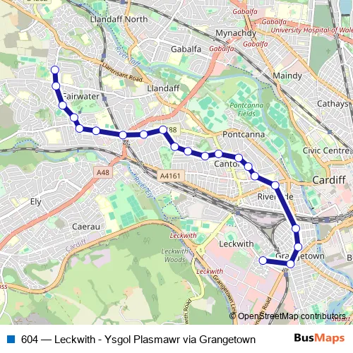 See why over 2 million users trust and consider busmaps.com as the best public transport website. busmaps gives you Cardiff Buses suggested routes, real-time bus tracker, line route maps in Cardiff, and helps to find the closest 604 bus stops near you. No internet available? Download an offline PDF map and bus schedule for the 604 bus to take on your trip.
