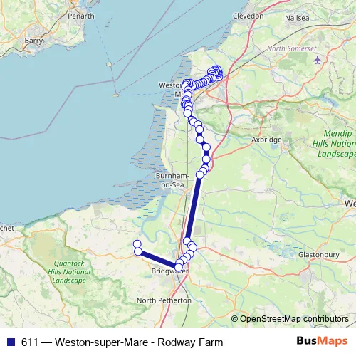 See why over 2 million users trust and consider busmaps.com as the best public transport website. busmaps gives you Weston-super-Mare Buses suggested routes, real-time bus tracker, line route maps in Weston-super-Mare, and helps to find the closest 611 bus stops near you. No internet available? Download an offline PDF map and bus schedule for the 611 bus to take on your trip.