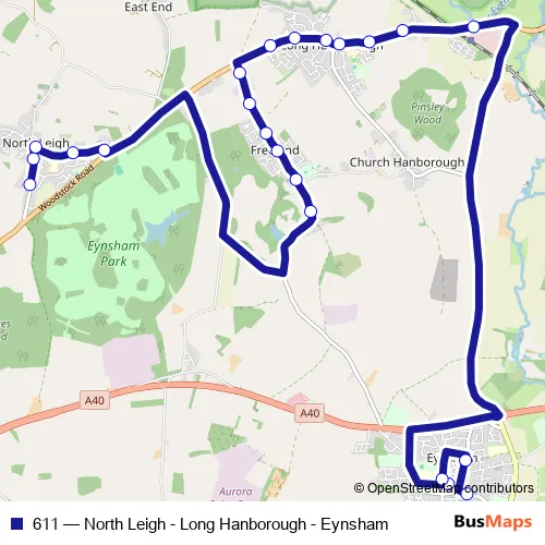 Click here to view the nearest 611 - North Leigh - Long Hanborough - Eynsham bus stop.