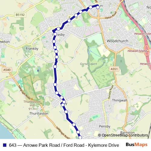 Click here to view the nearest 643 - Arrowe Park Road / Ford Road - Kylemore Drive bus stop.