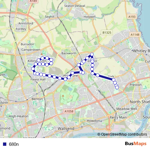 Bus 680n in Wallsend: Stops & Timetable