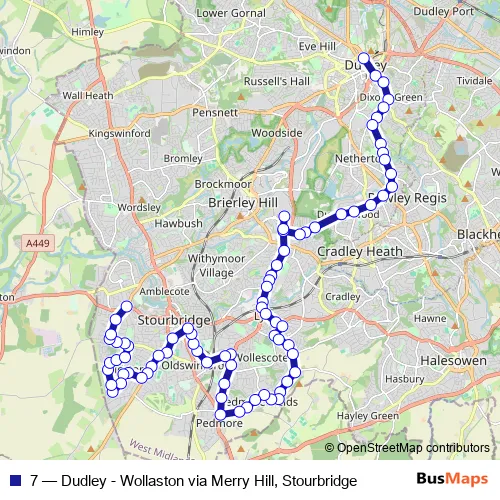See why over 2 million users trust and consider busmaps.com as the best public transport website. busmaps gives you Dudley Buses suggested routes, real-time bus tracker, line route maps in Dudley, and helps to find the closest 7 bus stops near you. No internet available? Download an offline PDF map and bus schedule for the 7 bus to take on your trip.