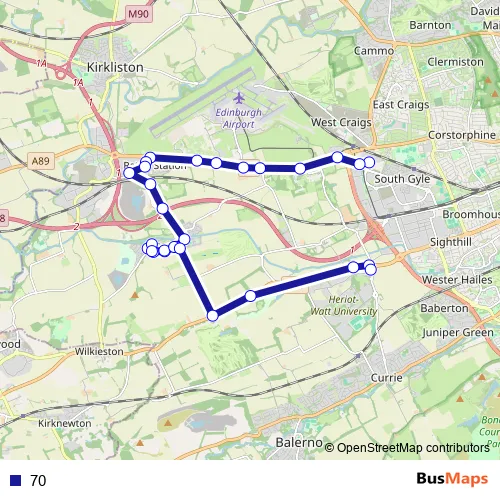 See why over 2 million users trust and consider busmaps.com as the best public transport website. busmaps gives you Edinburgh Buses suggested routes, real-time bus tracker, line route maps in Edinburgh, and helps to find the closest 70 bus stops near you. No internet available? Download an offline PDF map and bus schedule for the 70 bus to take on your trip.