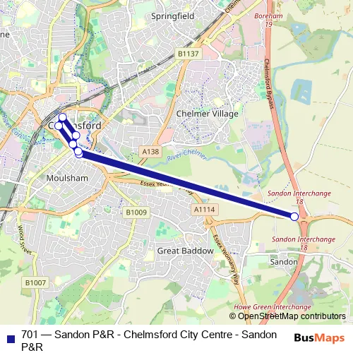 Bus 701 - Sandon P&R - Chelmsford City Centre - Sandon P&R in Chelmsford: Stops & Timetable
