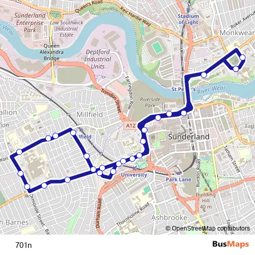 See why over 2 million users trust and consider busmaps.com as the best public transport website. busmaps gives you Sunderland Buses suggested routes, real-time bus tracker, line route maps in Sunderland, and helps to find the closest 701n bus stops near you. No internet available? Download an offline PDF map and bus schedule for the 701n bus to take on your trip.