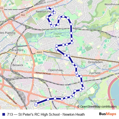 Bus 713 - St Peter's RC High School - Newton Heath in Manchester: Stops & Timetable