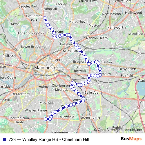 Princess Road. 733 (Whalley Range HS - Cheetham Hill) is operational during on weekdays.