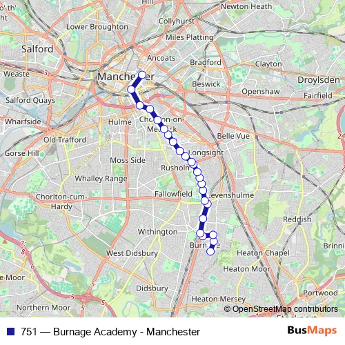 Click here to view the nearest 751 - Burnage Academy - Manchester bus stop.