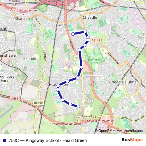 Bus 758C - Kingsway School - Heald Green in Stockport: Stops & Timetable