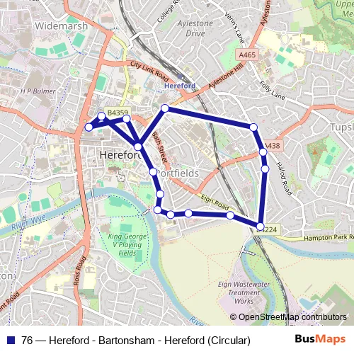 See why over 2 million users trust and consider busmaps.com as the best public transport website. busmaps gives you Hereford Buses suggested routes, real-time bus tracker, line route maps in Hereford, and helps to find the closest 76 bus stops near you. No internet available? Download an offline PDF map and bus schedule for the 76 bus to take on your trip.