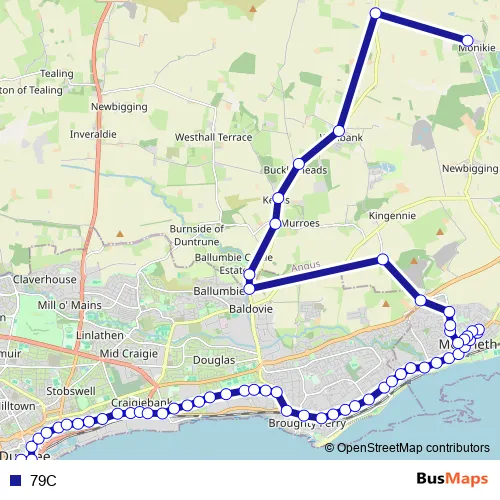 See why over 2 million users trust and consider busmaps.com as the best public transport website. busmaps gives you Dundee Buses suggested routes, real-time bus tracker, line route maps in Dundee, and helps to find the closest 79C bus stops near you. No internet available? Download an offline PDF map and bus schedule for the 79C bus to take on your trip.