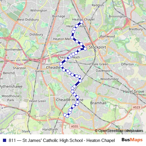 Bus 811 - St James' Catholic High School - Heaton Chapel: Full Schedule in Stockport