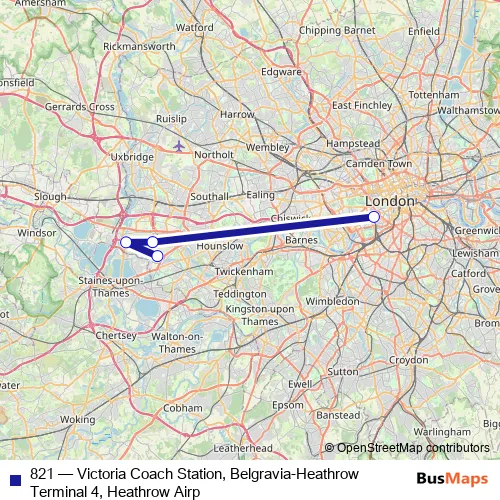 Click here to view the nearest 821 - Victoria Coach Station, Belgravia-Heathrow Terminal 4, Heathrow Airp bus stop.