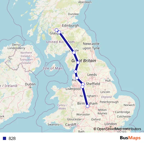 The first stop of the 828 bus route is Manchester Central Coach Station and the last stop is Birmingham Coach Station,Stand 8. 828 is operational during everyday.