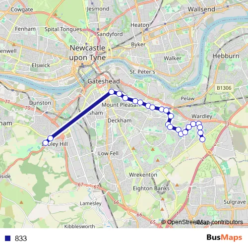 See why over 2 million users trust and consider busmaps.com as the best public transport website. busmaps gives you Gateshead Buses suggested routes, real-time bus tracker, line route maps in Gateshead, and helps to find the closest 833 bus stops near you. No internet available? Download an offline PDF map and bus schedule for the 833 bus to take on your trip.
