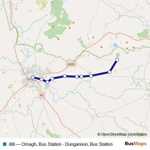 See why over 2 million users trust and consider busmaps.com as the best public transport website. busmaps gives you Omagh Buses suggested routes, real-time bus tracker, line route maps in Omagh, and helps to find the closest 86l bus stops near you. No internet available? Download an offline PDF map and bus schedule for the 86l bus to take on your trip.