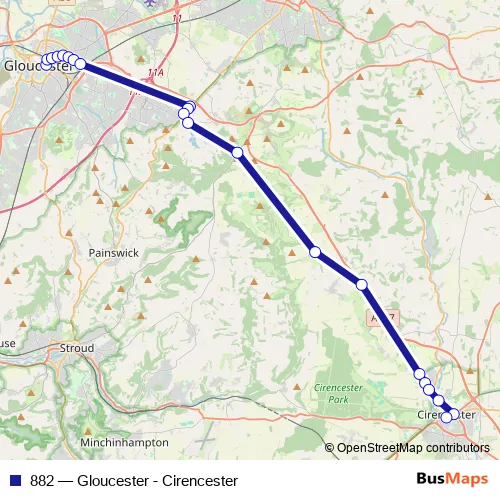 Click here to view the nearest 882 - Gloucester - Cirencester bus stop.