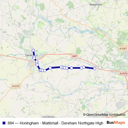 See why over 2 million users trust and consider busmaps.com as the best public transport website. busmaps gives you East Dereham Buses suggested routes, real-time bus tracker, line route maps in East Dereham, and helps to find the closest 884 bus stops near you. No internet available? Download an offline PDF map and bus schedule for the 884 bus to take on your trip.