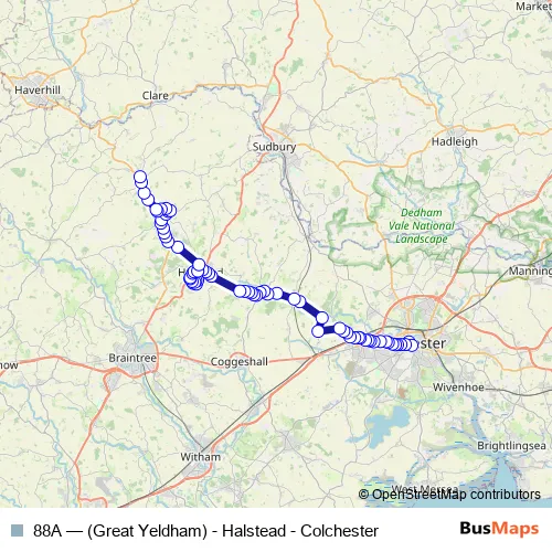 Bus 88A - (Great Yeldham) - Halstead - Colchester Schedule in Halstead