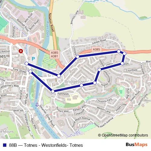Click here to view the nearest 88B - Totnes - Westonfields- Totnes bus stop.