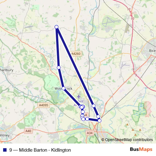 Sport and Social Club. 9 (Middle Barton - Kidlington) is operational during everyday.
