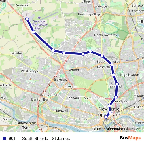 See why over 2 million users trust and consider busmaps.com as the best public transport website. busmaps gives you Newcastle upon Tyne Buses suggested routes, real-time bus tracker, line route maps in Newcastle upon Tyne, and helps to find the closest 901 bus stops near you. No internet available? Download an offline PDF map and bus schedule for the 901 bus to take on your trip.