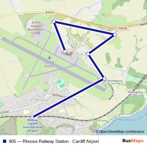 Click here to view the nearest 905 - Rhoose Railway Station - Cardiff Airport bus stop.