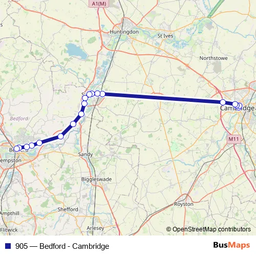 Click here to view the nearest 905 - Bedford - Cambridge bus stop.