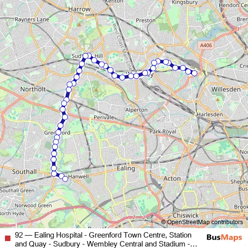 Click here to view the nearest 92 - Ealing Hospital - Greenford Town Centre, Station and Quay - Sudbury - Wembley Central and Stadium - Brent Park Superstores - St Raphael's North bus stop.