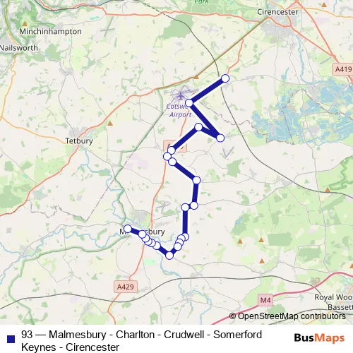 Bus 93 - Malmesbury - Charlton - Crudwell - Somerford Keynes - Cirencester in Charlton: Stops & Timetable