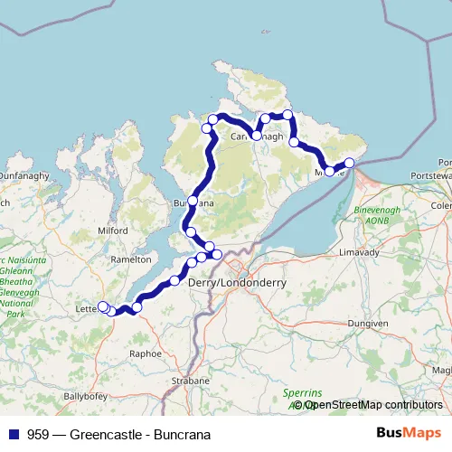 Bus 959 - Greencastle - Buncrana: Full Schedule in Carndonagh