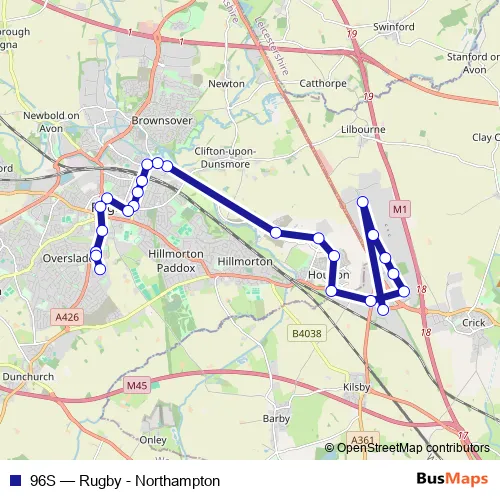 Click here to view the nearest 96S - Rugby - Northampton bus stop.