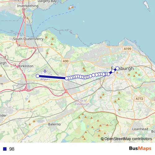 See why over 2 million users trust and consider busmaps.com as the best public transport website. busmaps gives you Edinburgh Buses suggested routes, real-time bus tracker, line route maps in Edinburgh, and helps to find the closest 98 bus stops near you. No internet available? Download an offline PDF map and bus schedule for the 98 bus to take on your trip.
