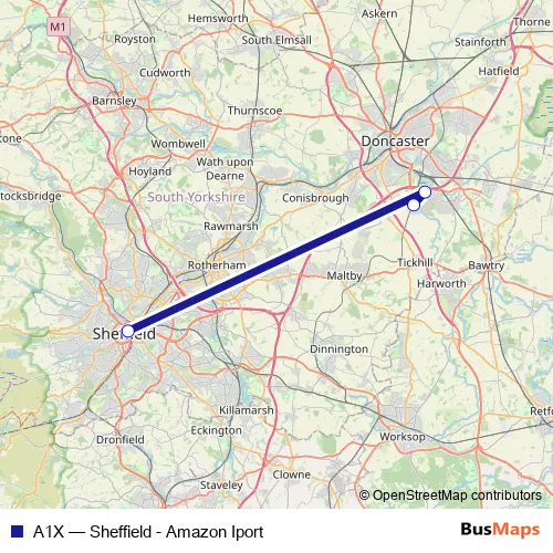 Click here to view the nearest A1X - Sheffield - Amazon Iport bus stop.