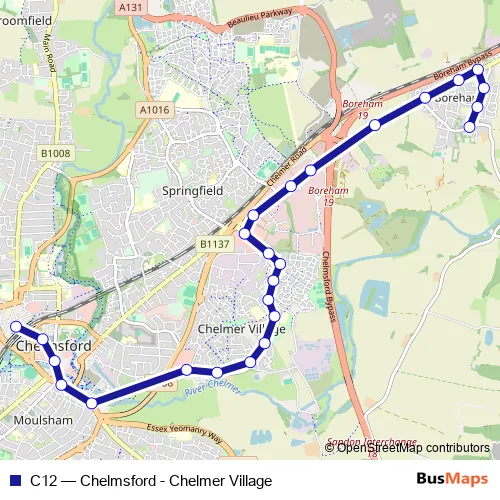 Click here to view the nearest C12 - Chelmsford - Chelmer Village bus stop.