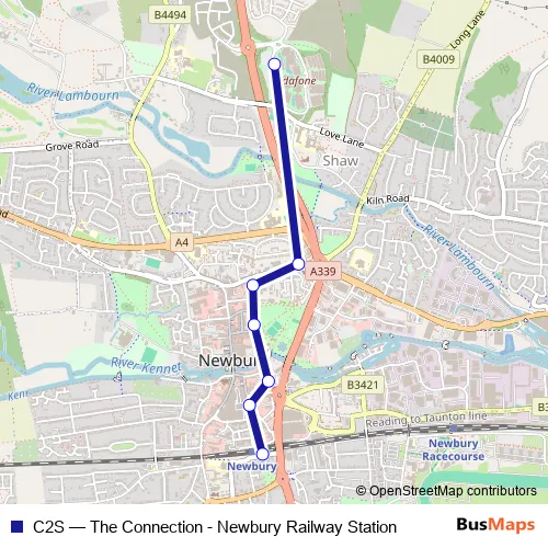 Click here to view the nearest C2S - The Connection - Newbury Railway Station bus stop.